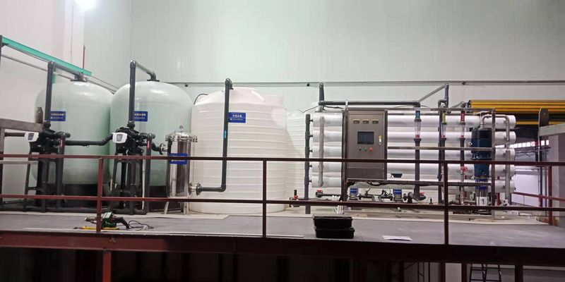 自来水→电动阀→多介质过滤器→活性炭过滤器→软化水器→中间水箱→低压泵 →精密过滤器→一级反渗透→PH调节→混合器→二级反渗透(反渗透膜表面带正电荷) →纯水箱→纯水泵→微孔过滤器→用水点