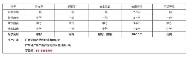 关于产品种类 广州诺坤达单向透视玻璃按质量高低分为多个种类,敬请注意区分。