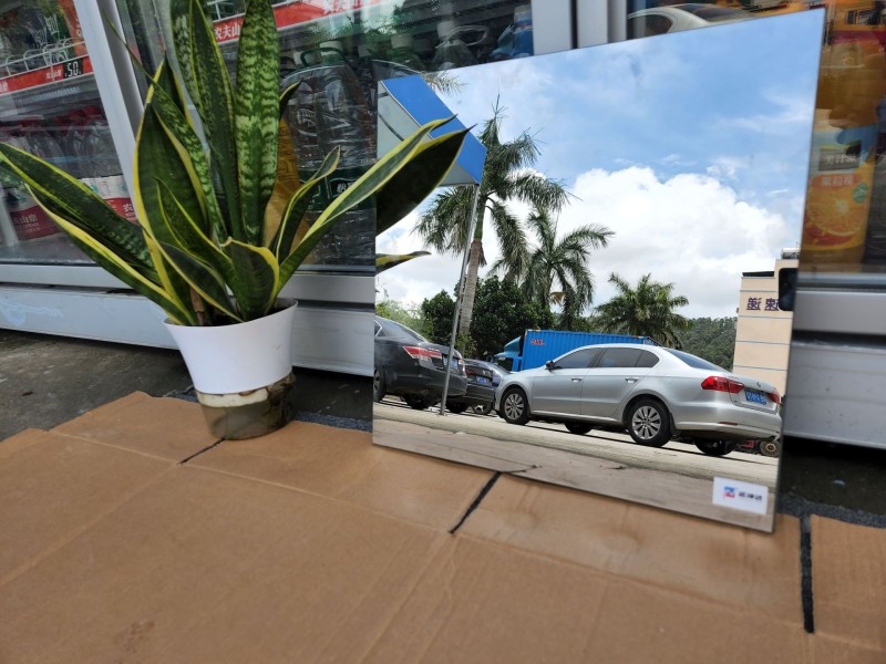 正品单向透视玻璃,由于玻璃表面有金属介质物存在,玻璃平放桌面,常规的肉眼可以清楚看到纯银色镜面膜层存在,当物体靠近时,有直观且清晰的影像显现在镜面表面。次品单向透视玻璃,因为镜面层夹胶在两片玻璃中间,其肉眼观察的结果,左右两面玻璃的影像没有任何差别,影像暗淡无光泽。
